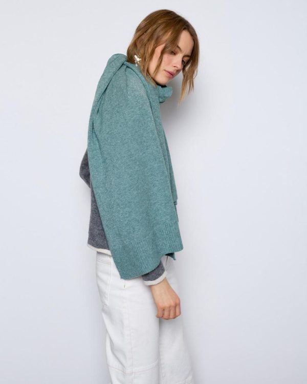 Bufanda sin costura de punto, de color verde agua.