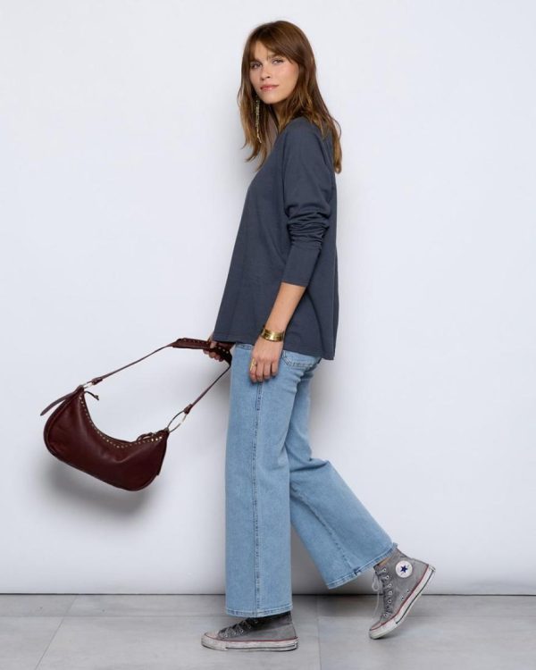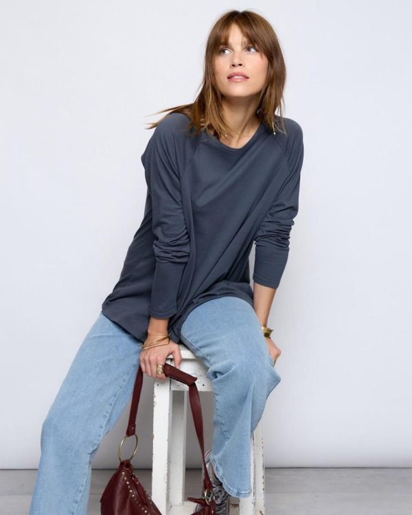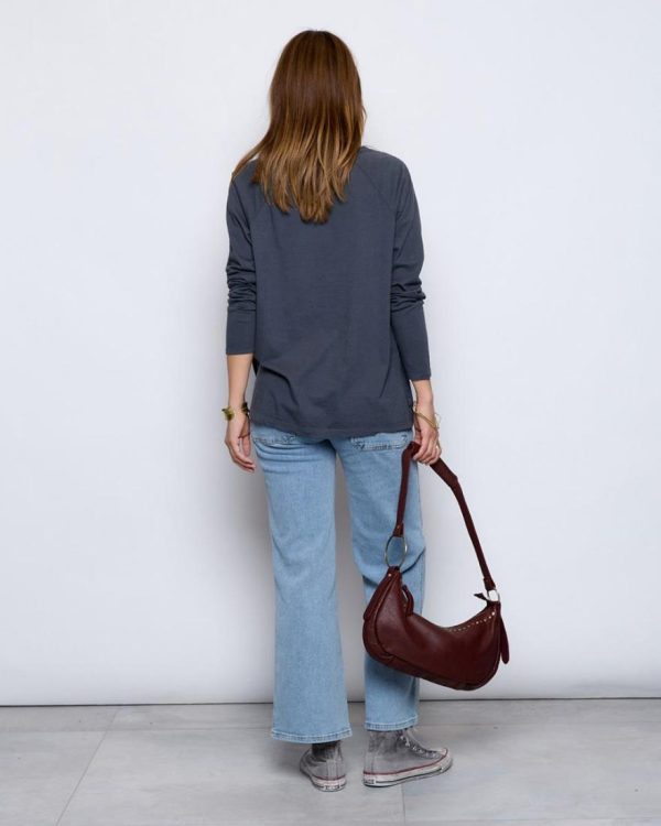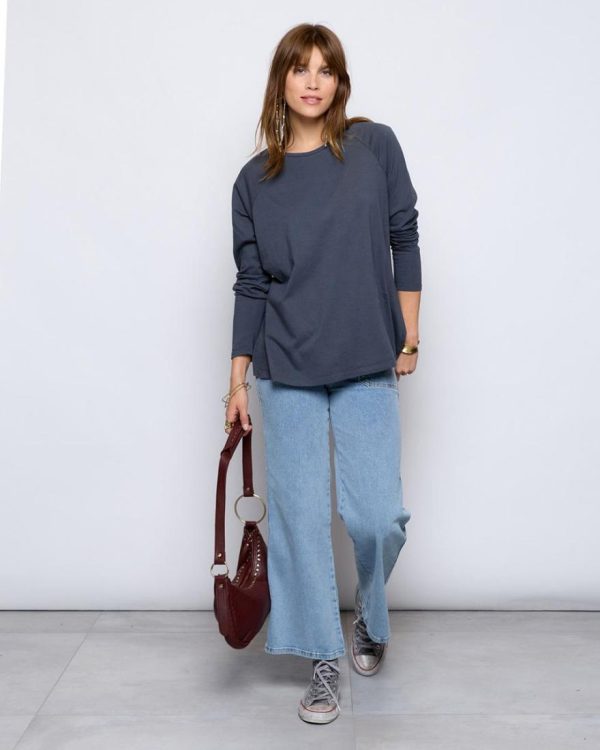 Camiseta de manga larga de color gris oscuro, con detalle de manga ranglan.