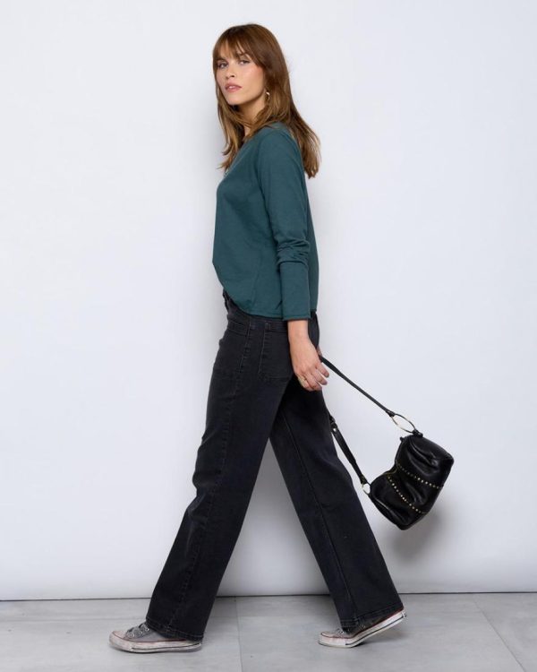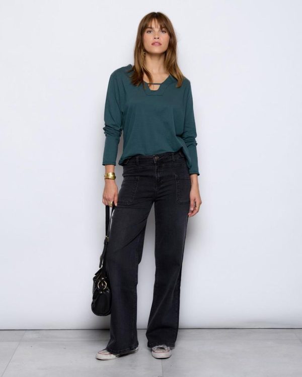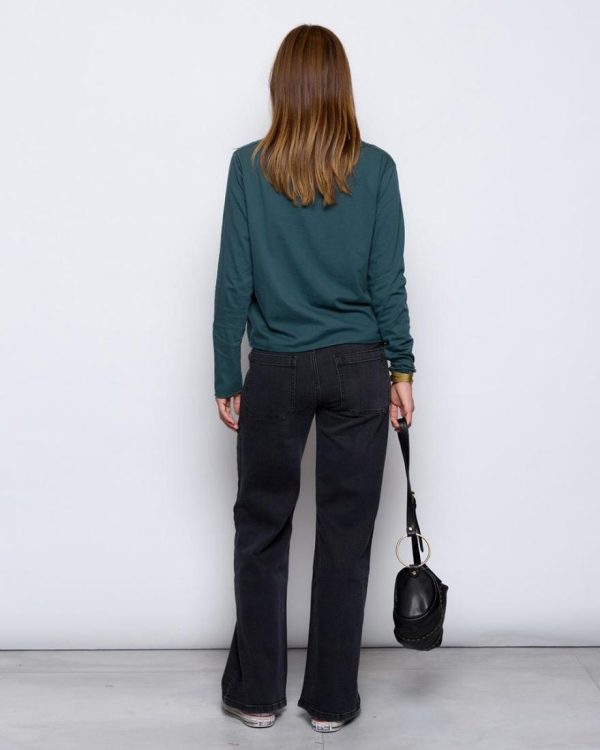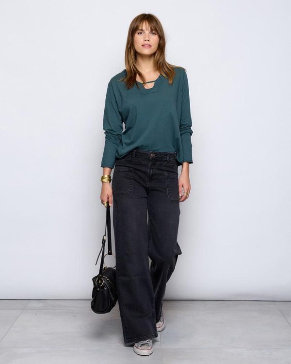 Camiseta de manga larga de color verde agua, con escote pico y detalle de tira.