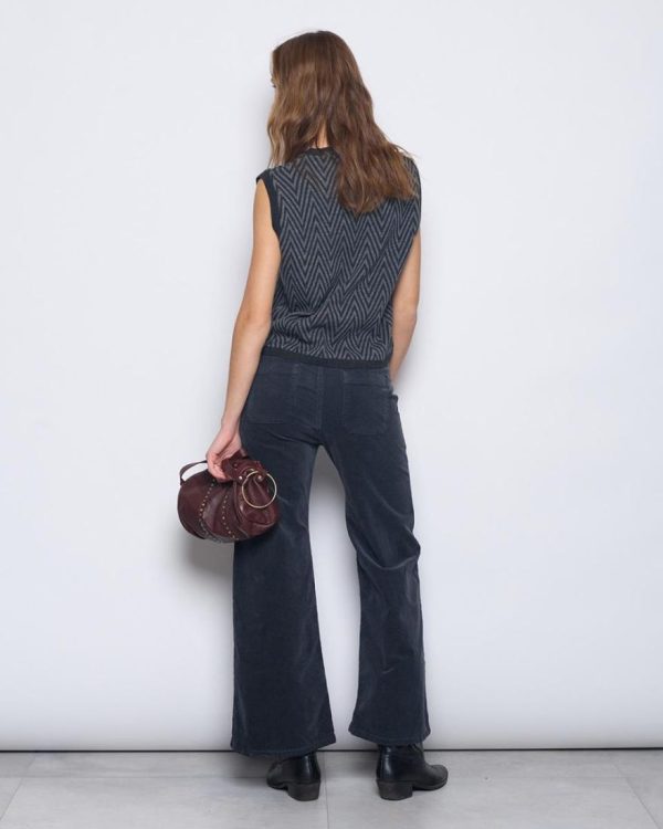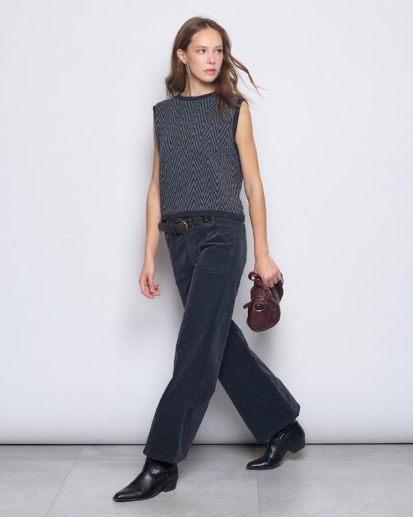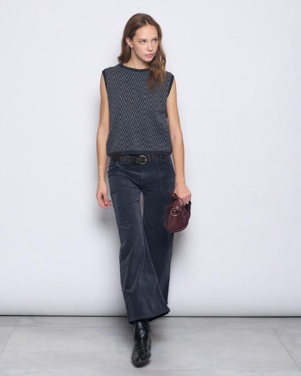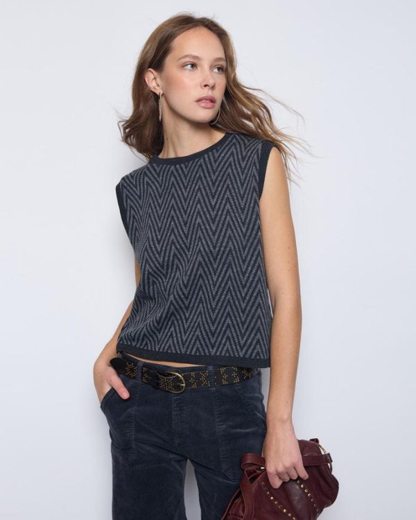 Chaleco de punto con fantasía de zigzag en tonos grises.