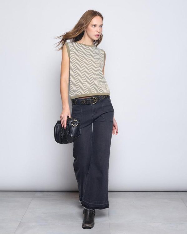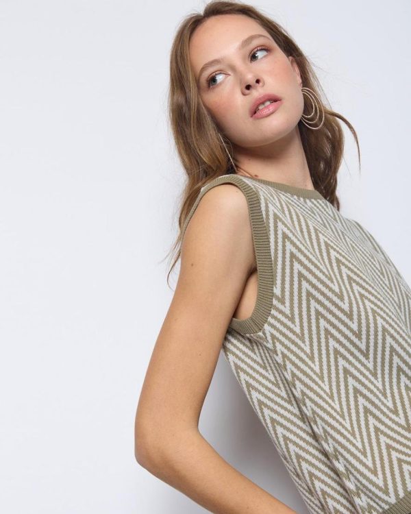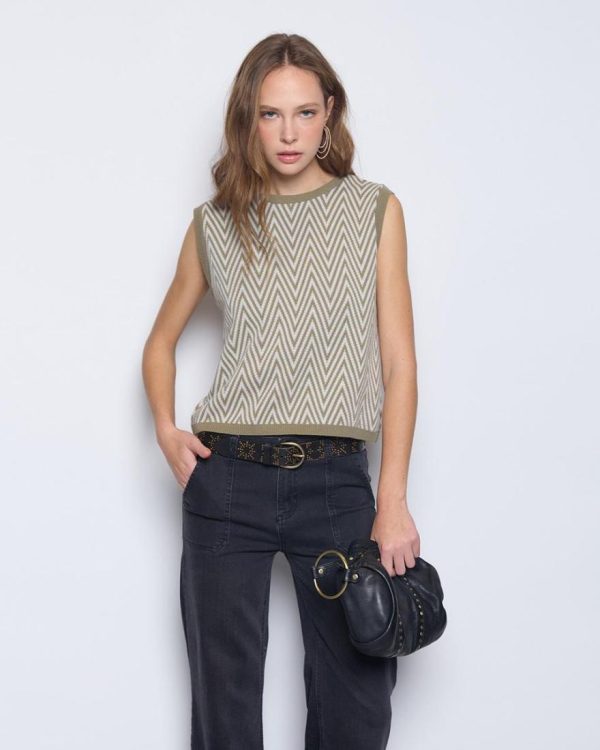 Chaleco Punto Zigzag Verde | Mujer Renatta & go Chalecos