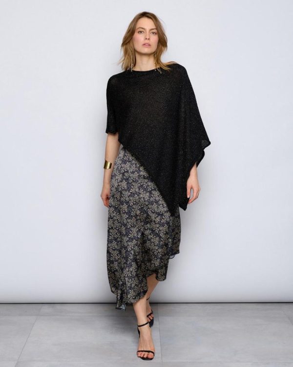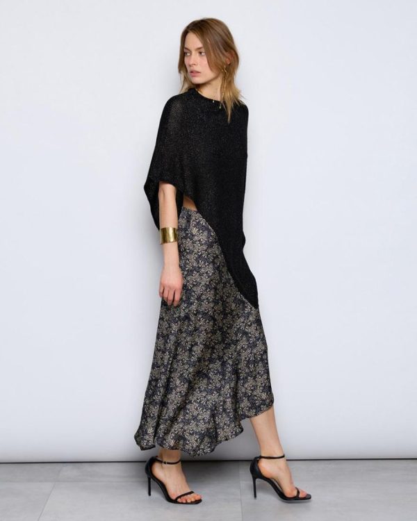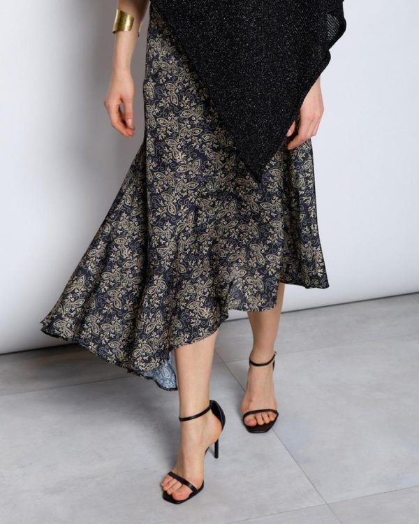 Falda asimétrica de color negro con estampado floral mini.