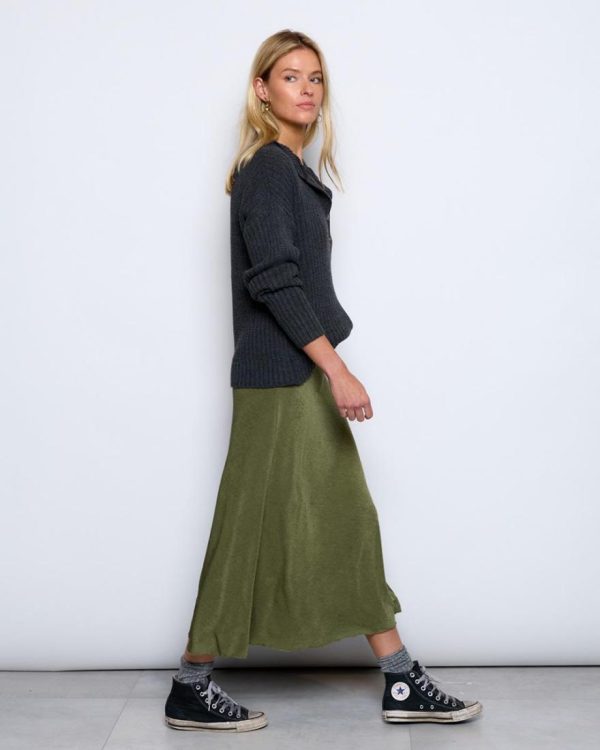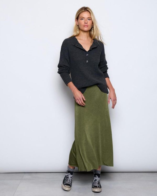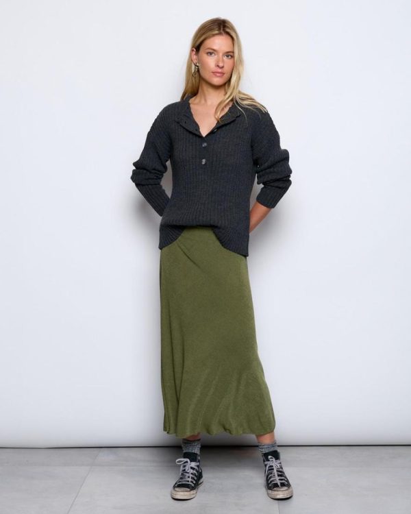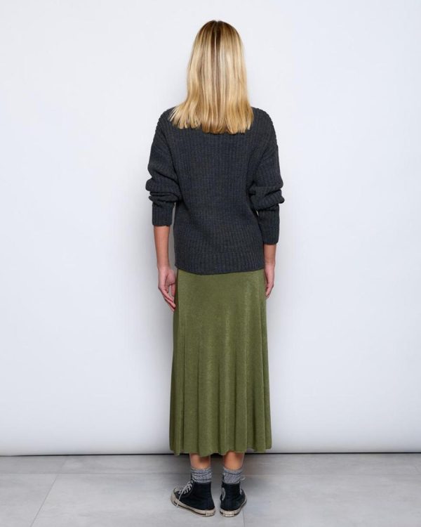 Falda larga de color verde detalle de goma en cintura.