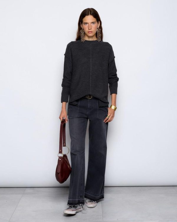 Jersey de color gris oscuro, con detalle de costuras vistas y aberturas en lateral.