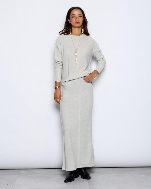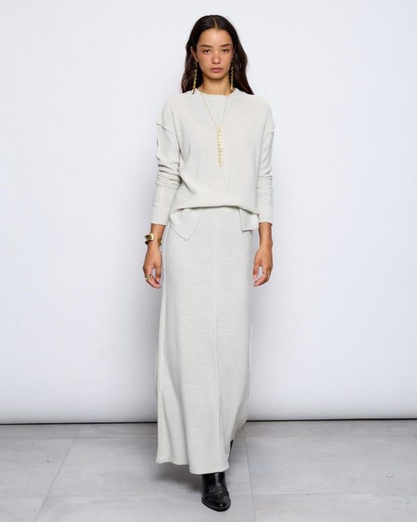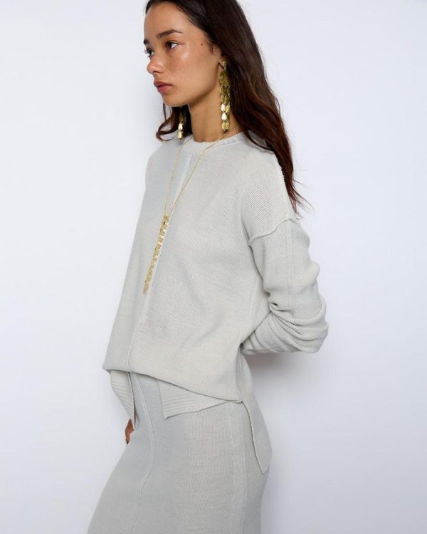 Jersey de color crudo, con detalle de costuras vistas y aberturas en lateral.
