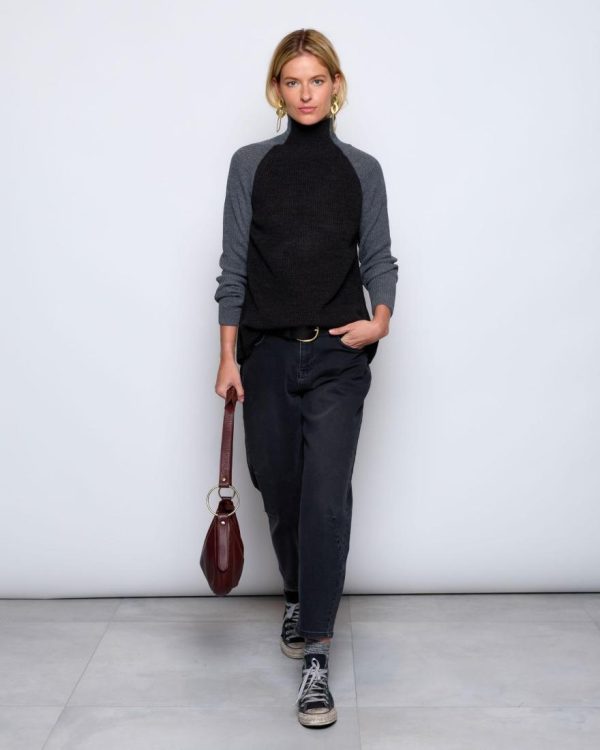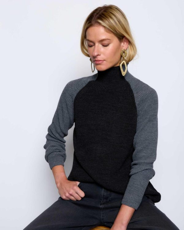 Jersey de manga larga con detalle bicolor y cuello cisne.