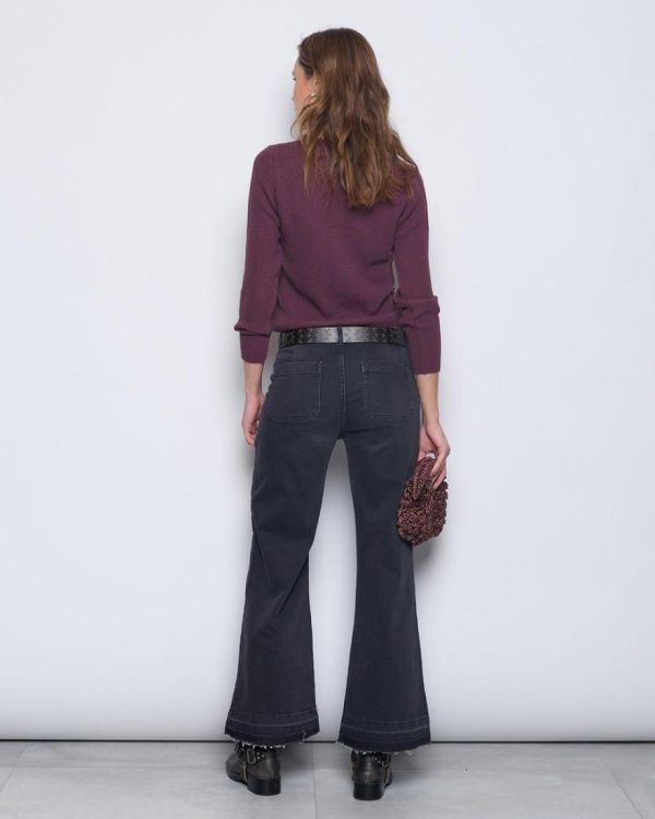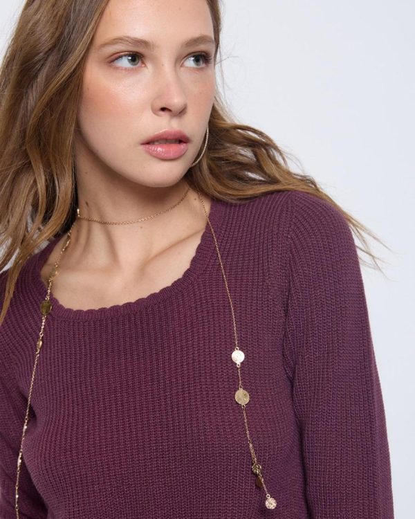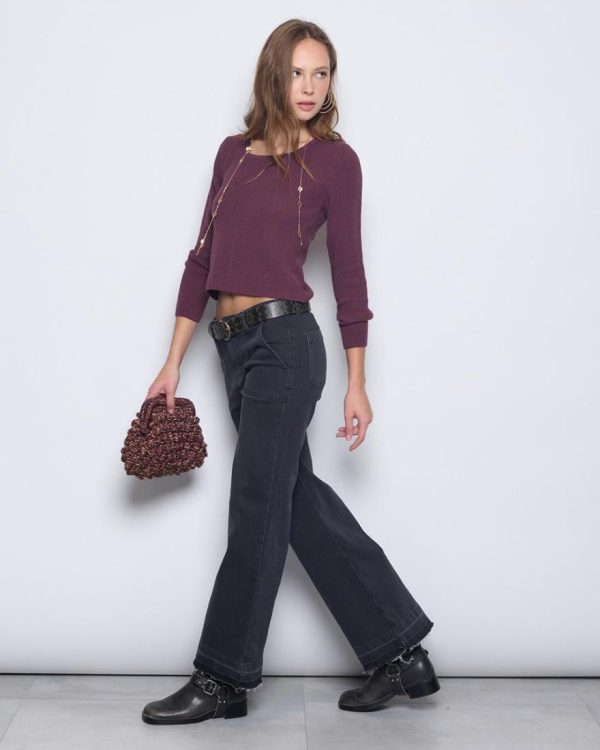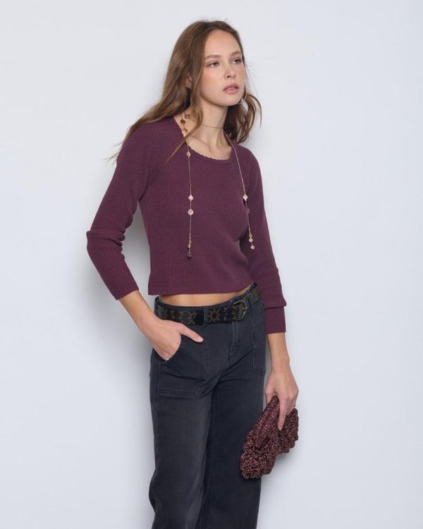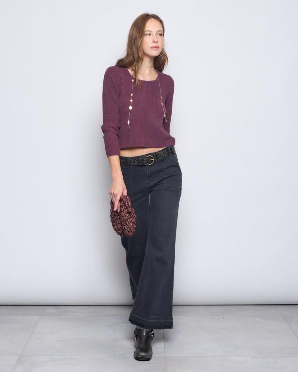 Jersey de manga larga con detalle de escote cuadrado y canalé de color morado.