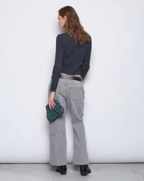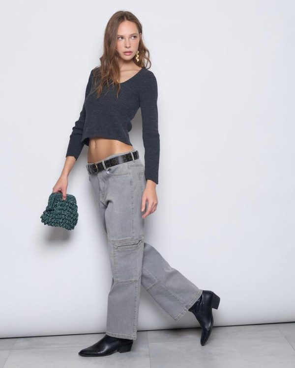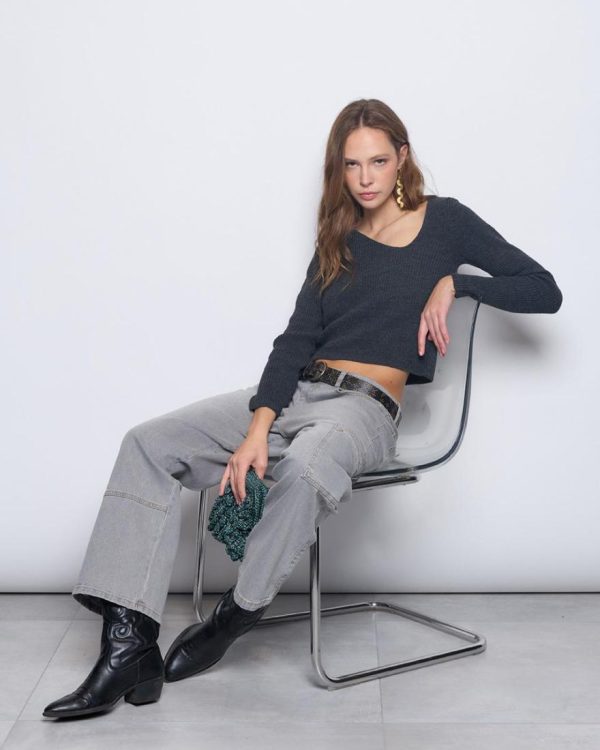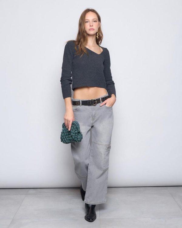Jersey de manga larga con escote pico asimétrico de color gris oscuro.
