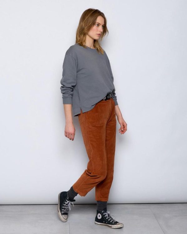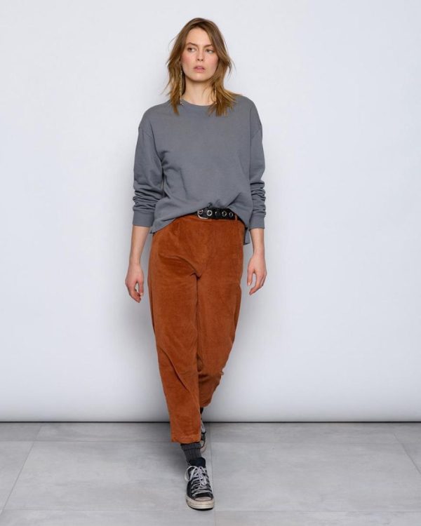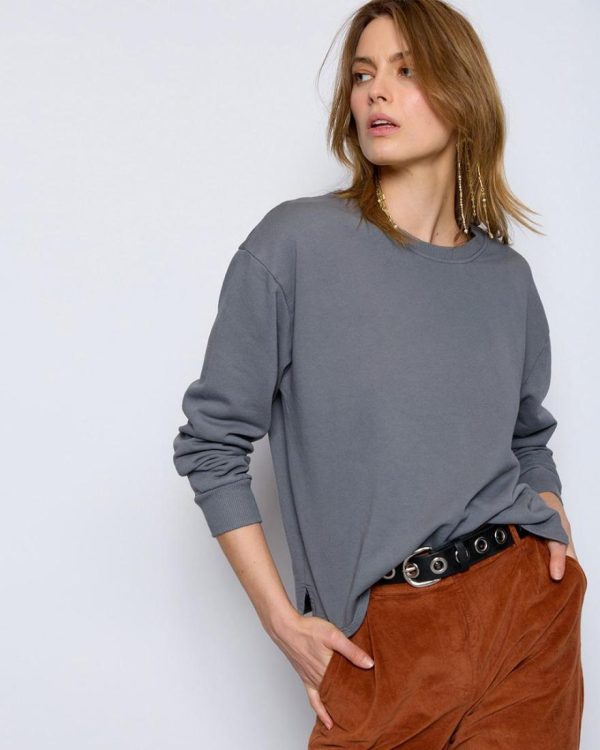 Sudadera de manga larga tipo oversize, con manga larga y sin capucha, de color gris.