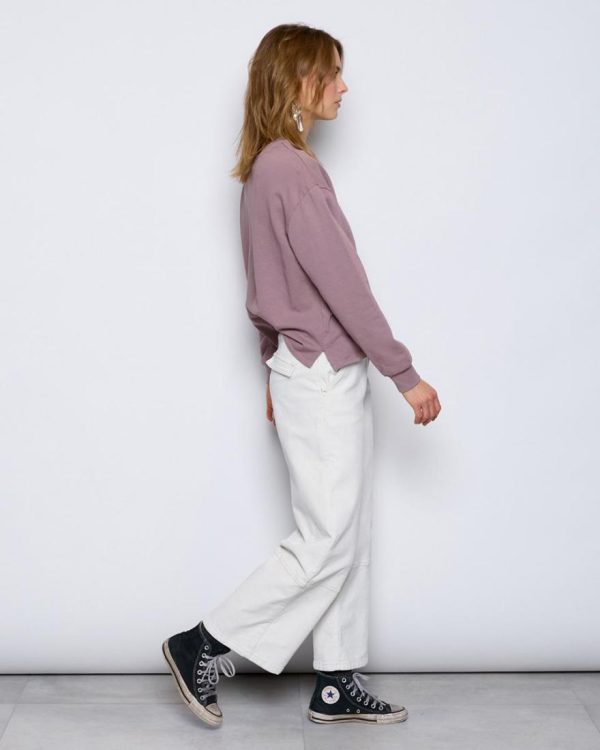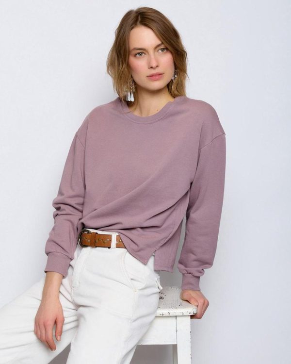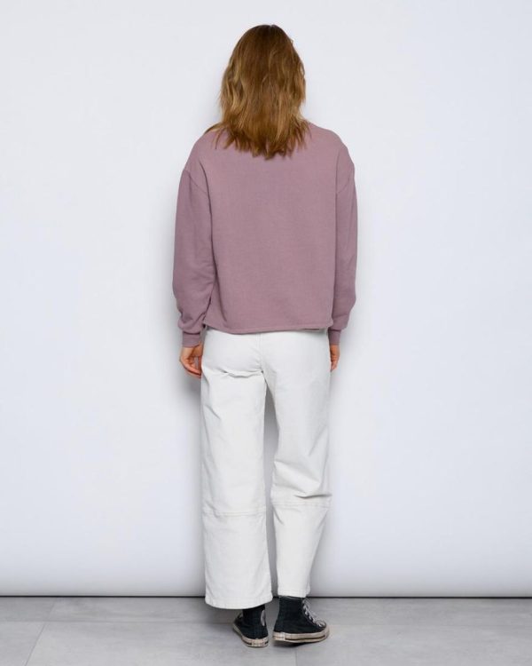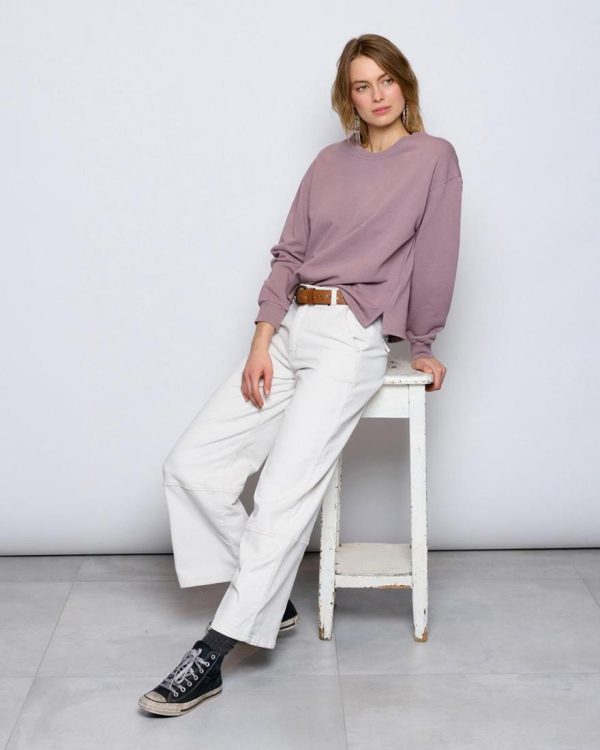 Sudadera de manga larga tipo oversize, con manga larga y sin capucha, de color morado claro.