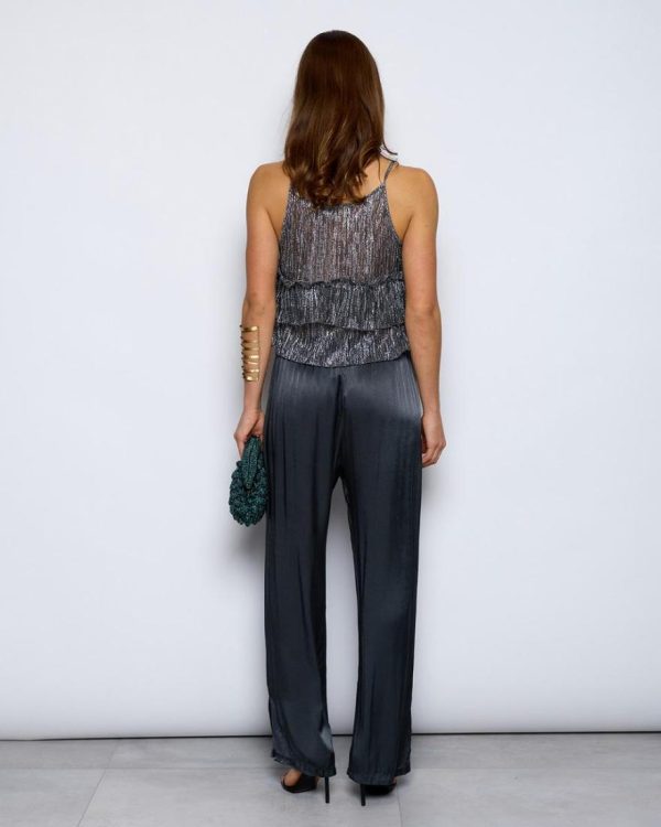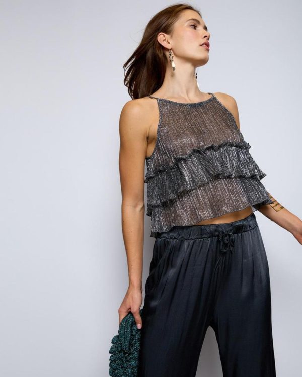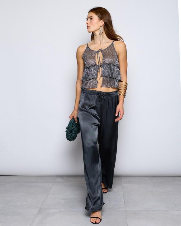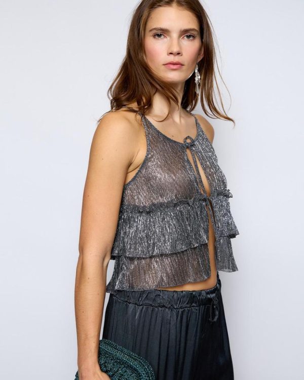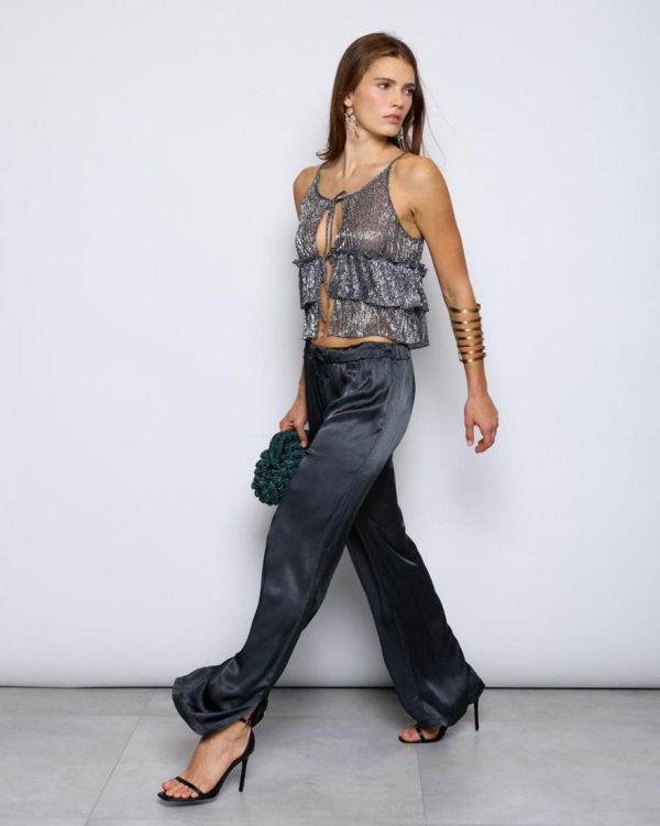 Top de tirantes con lazada en espalda de color negro con brillo.