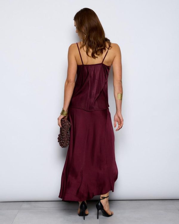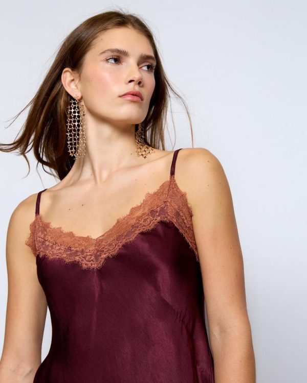 Top lencero de tirantes con encaje en escote, de color granate.